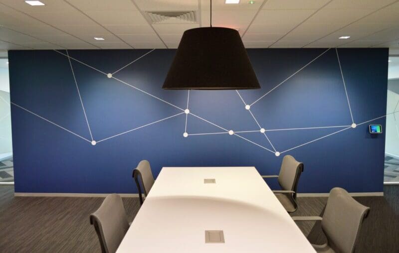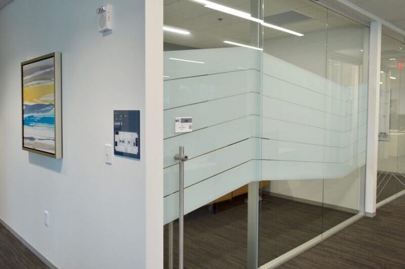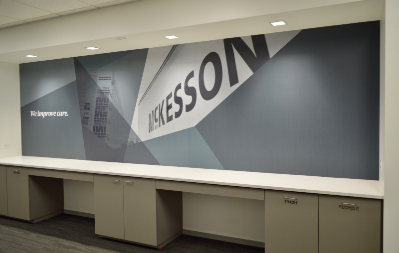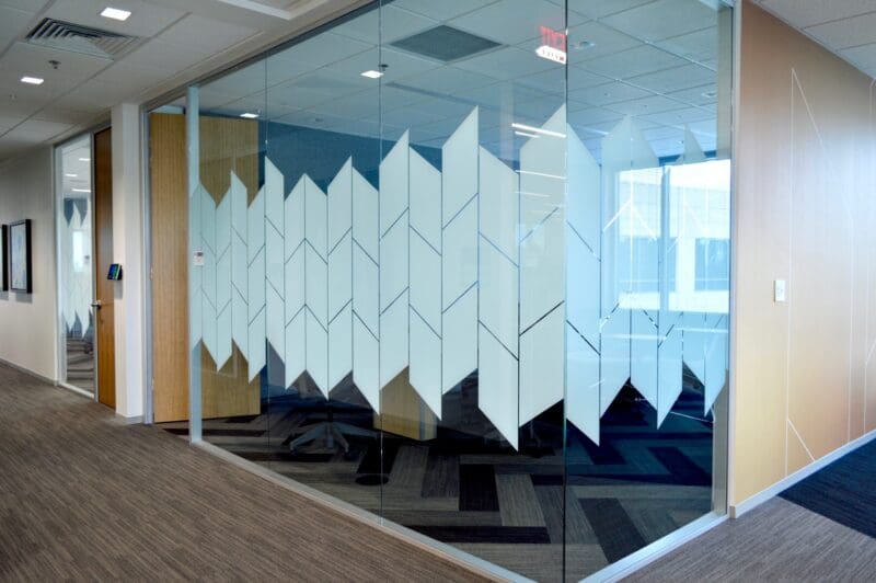 Pattern matched wallcovering and conference room privacy film. Custom printed with the industry’s smoothest white ink technology to the customer’s exact opacity request.