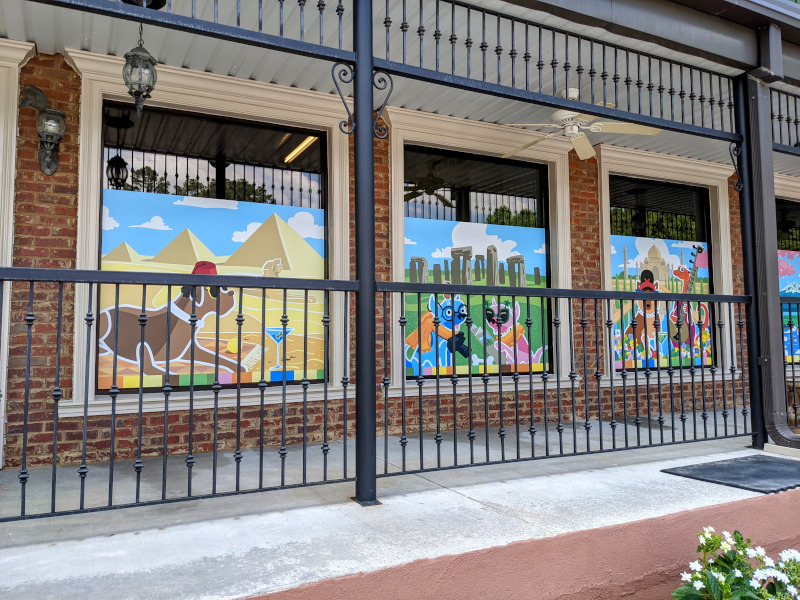 Custom designed, printed wall mural applied directly to rough cinderblock to elevate the outside appeal of their newest building on campus.